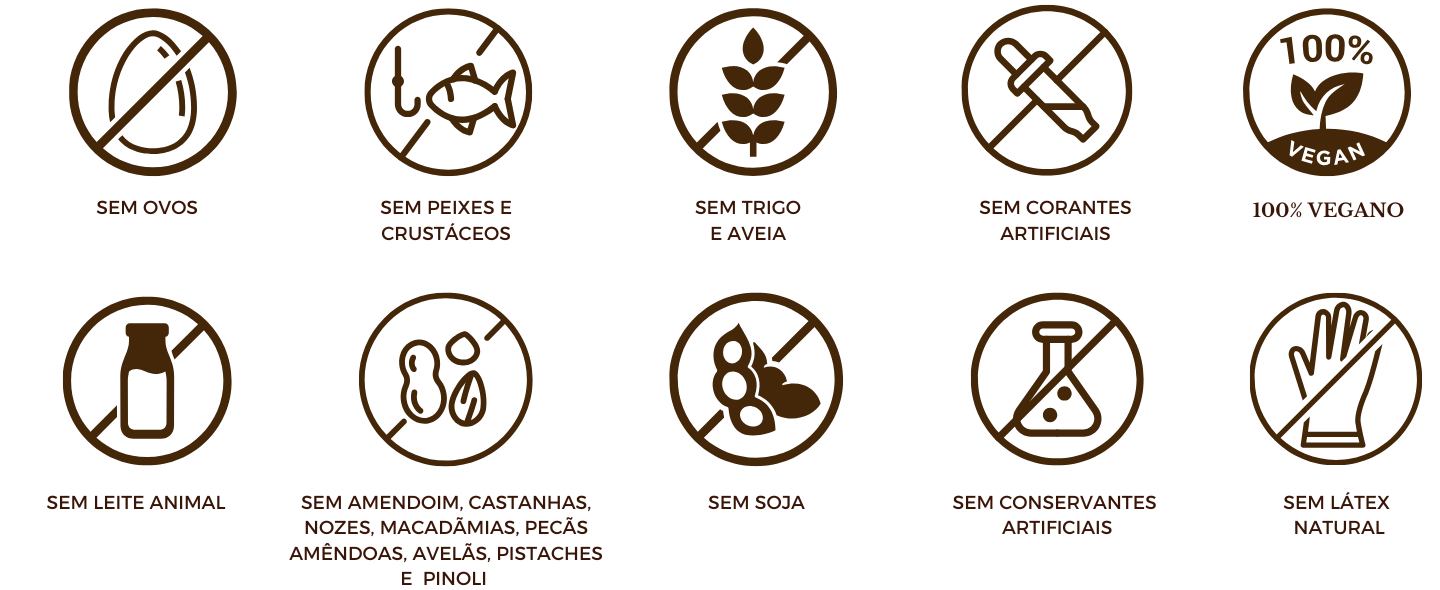 Todos os nossos produtos são veganos, isentos dos alergênicos listados pela Anvisa: